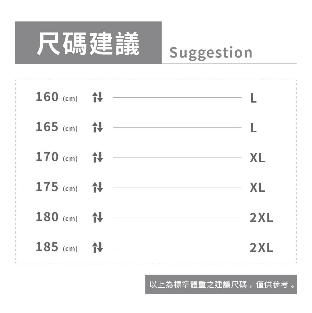 只需輸入身高/體重即可馬上掌握最合適的版型
