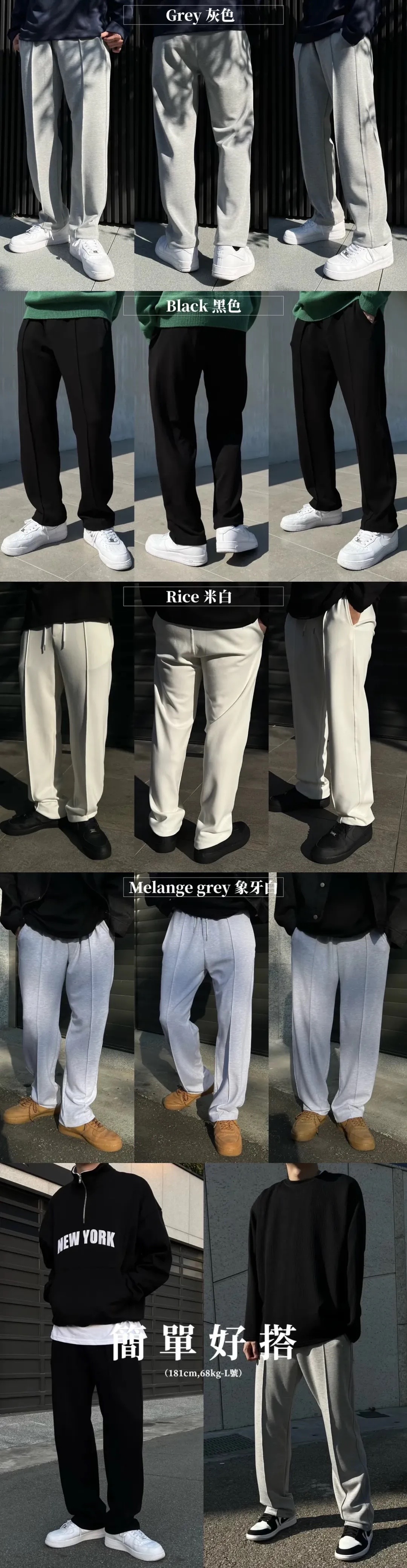 與空氣棉褲採用相同面料,移除中間摺線,提升在搭配上的靈活度